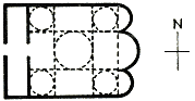 The ground plan, if we add three apses on the east and a narthex on the west, looks something like this: