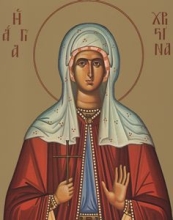 Η Αγία Χριστίνα γεννήθηκε στην Τύρο και ήταν κόρη του στρατηγού Ουρβανού. Η οικογένειά της ήταν φανατικοί ειδωλολάτρες, αλλά η Χριστίνα μεταστράφηκε στο Χριστιανισμό χάρη σε μια ευσεβή γυναίκα. Όταν το πληροφορήθηκε ο πατέρας της, την έκλεισε σε κάποιο πύργο προσπαθώντας με κάθε τρόπο να την κάνει να επιστρέψει και πάλι στην π ατρώα θρησκεία. Γι αυτό τον λόγο της παρέδωσε προς φύλαξη είδωλα φτιαγμένα από πολύτιμα υλικά. Η αγία Χριστίνα όμως φρόντισε να τα δώσει σε πτωχούς. Όταν το πληροφορήθηκε ο πατέρας της εξοργίσθηκε την έκλεισε στην φυλακή και αργότερα την έριξε στην θάλασσα. Η αγία όμως σώθηκε από θαύμα, ενώ το ίδιο βράδυ πέθανε ο πατέρας της. Τον διαδέχθηκε στο αξίωμα ο Δίων, ο οποίος συνέχισε τα βασανιστήρια, τα οποία υπέμεινε με ευσέβεια και ακλόνητη πίστη. Πάνω από τρεις χιλιάδες ήταν οι ειδωλολάτρες που πίστεψαν την αλήθεια του Ευαγγελίου, χάρη στην ανδρεία και την καρτερικότητα της Αγίας. Πολύ πιο φρικτά βασανιστήρια υπέστη από το διάδοχο του Δίωνα, Ιουλιανό . Αυτός, αφού τις έκοψε τους μαστούς και την γλώσσα, εν τέλει διέταξε να την λογχίσουν.