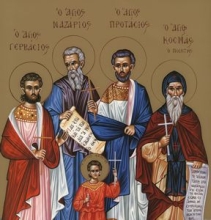 Ναζαρίου, Γερβασίου, Προτασίου και Κελσίου μαρτύρων, Θεράποντος ιερομάρτυρος του εν Κύπρω επισκοπεύσαντος |