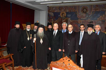 Τήν Ἀποστολική Διακονία ἐξεπροσώπησαν ὁ Πανοσιολ. Ἀρχιμανδ. κ. Ἀλέξιος Ψωίνος, Διευθυντής τῶν Ὑπηρεσιῶν καί τοῦ Θεολογικοῦ Οἰκοτροφείου, καί ὁ π. Λεωνίδης Φ. Ψαριανός, Διευθυντής Διοικητικοῦ – Οἰκονομικοῦ.