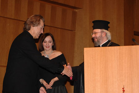Ιδιαίτερα ευχαριστούμε και να τιμάμε όλους τους καλλιτεχικούς συντελεστές και ερμηνευτές αυτής της βραδυάς. Αυτούς που παρέχουν το ταλέντο και το χάρισμά τους άμεμπτο, όχι για την απώλεια ψυχών, αλλά για τη διάπλαση του ήθους και τη γνήσια χαρά, αυτούς που διέρχονται από τη πρόσκαιρη καλλιτεχνική σκηνή του παρόντος αυτού βίου σαν να περπατούν στην καινότητα της ζωής, τους σεμνούς καλλιτέχνες που με το ηδύμολπο μέλος τους μας ψυχαγωγούν και μορφώνουν το ήθος μας, έτσι ώστε η ζωή μας να συμφωνεί με τη συνείδησή μας και να είναι γεμάτη από το αναστάσιμο γέλιο: