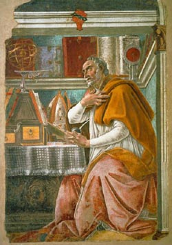 Ce « scintillement» de la réalitéincréé e qui effleure la conscience dans un moment d’attouchement sans durée fait penser à l’ exaiphnês de Platon (Lettre VII, 341 cd), à « l’éclair qui éblouit en passant la partie supérieure de l’âme», de saint Grégoire de Nazianze (Or., XXXVIII, 7; PG. 36, 317 bc ; Or., XLV, 3, 625- 8 a ), au raptim et quasi sub quodam coruscamine scintillula œ transeuntis, tenuiter vix attacti, de saint Bernard (Sermo XVIII in Cantica ; PL 183, 862 b). Toute la question de la mystique de saint Augustin dépend de l’interprétation de cet « attouchement». Mais il ne définit pas sa nature dans les textes que nous venons de citer, ni dans la description de I’ « extase d’Ostie» (9), où nous trouvons les mêmes expressions : parcours ascendant du monde extérieur, rentrée en soi-même et dépassement de l’ â me (et venimus in mentes nostras et transcendimus eas ), le Présentéternel et l’attouchement fugitif (attigimus eam modice toto ictu cordis ), dans une « pensée rapide», de la Sagesseéternelle (et rapida cogitatione attigimus aeternam sapientiam super omnia manentem ), enfin – le retour vers la parole humaine « qui commence et finit» (Cont., IX, c. 10, 24-25,éd. Labriolle, II, 228-9). En dehors de ce momentum intelligentiae (ibid.), prémices de l’Esprit qui donne à conna î tre ce que sera la vieéternelle, on est réduit à la « docte ignorance», par laquelle le même Esprit nous apprend à dépasser tout ce qui peutêtre dit ou penséde l’Etre divin, en nous faisant désirer la vision sans fin de « l’Eternité, qui est la substance même de Dieu».