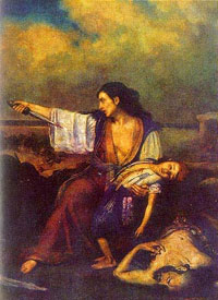 Το φέγγος όμως της Σελήνης πότε λαμπρόν απεκάλυπτε την φοβεράν αυτήν σύγκρουσιν που η λέξις ηρωϊσμός μόλις ημπορεί να χαρακτηρίση και πότε καλυπτόμενον καθίστα φοβερώτερας τας ιαχάς του πολέμου, τα αλλάχ ! Αλλάχ των μουσουλμάνων, τον γδούπον των βομβών, τα κλαγγάς των γιαταγανιών, τας ωρυγάς των ψυχορραγούντων, τας οδυνηράς κραυγάς των σφαζομένων από τους τουρκοαιγυπτίους γυναικοπαίδων. «Ποτέ ο ηρωϊσμός » γράφει νεώτερος υμνητής της δόξης του Μεσολογγίου, «δεν είχε φτάσει εις παρόμοιαν έξαρσιν ».