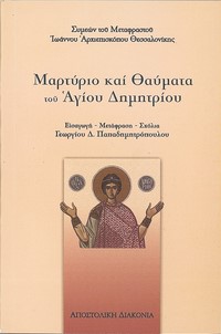 Το Μαρτύριο του Αγίου Δημητρίου είναι έργο του σπουδαιότερου αγιολόγου του 10ου αιώνα, του Συμεών του Μεταφραστή. Από τις συλλογές δε των Θαυμάτων, η πρώτη είναι έργο του Ιωάννη Α', αρχιεπισκόπου Θεσσαλονίκης, και γράφτηκε στις αρχές του 7ου αιώνα. Η δεύτερη συλλογή είναι έργο άγνωστου συγγραφέα και γράφτηκε περί τα τέλη του 7ου αιώνα, ενώ η τρίτη είναι έργο επίσης άγνωστου συγγραφέα και γράφτηκε κατά το 10ο αιώνα. Η απόδοση στη νεοελληνική γλώσσα, η εισαγωγή, τα σχόλια, τα πραγματολογικά στοιχεία και οι παραπομπές είναι έργο του θεολόγου-φιλολόγου, κ. Γεωργίου Παπαδημητρόπουλου.